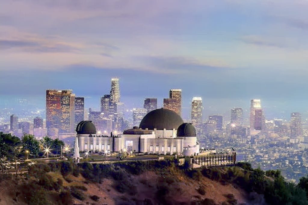 When I lived in Southern California, I was often seen at Griffith Observatory below the Hollywood Hills and overlooking the expansive Los Angeles Basin. I rode my fifteen speed bike along the San Gabriel foothills and up the road to the observatory (without stopping and in a sitting position!) Mostly I would find solace especially when the sun set below the Pacific horizon as I gazed across to the morass of an incandescent masterpiece dissected by freeway lifelines and a sweeping skyscraper glow. The aching in my soul would not go away yet I sensed I was operating in a dimensional warp in this unusual place. I was connected with a higher realm- protected and strong.